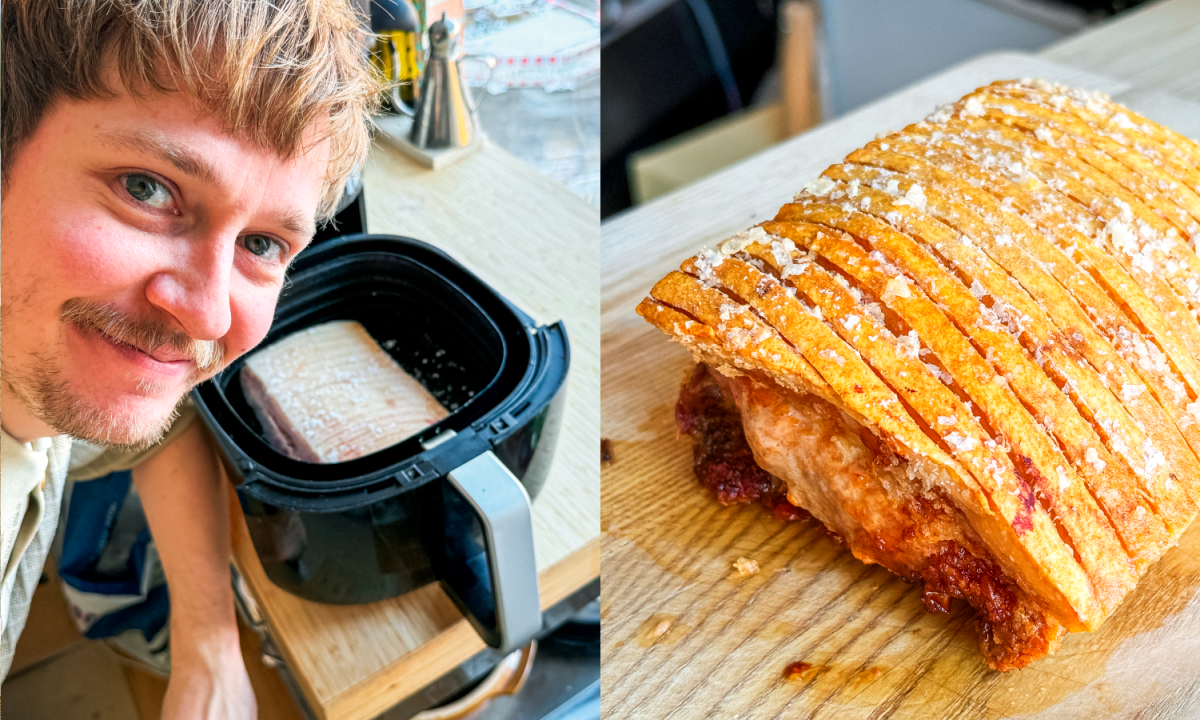 En flæskesteg i airfryer er perfekt til små familier, fordi man kan lave en mindre steg og spare på strømmen ved at droppe ovnen.